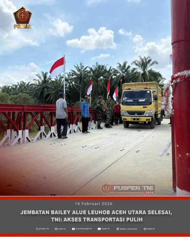 CyberWorld.id,Aceh /. Prajurit TNI dari Yonzipur 4/Tanpa Kawandya bersama personel Kodim 0103/Aceh Utara berhasil menyelesaikan pembangunan Jembatan Bailey yang berlokasi di Desa Alue Leuhob, Kecamatan Cot Girek, Kabupaten Aceh Utara, Sabtu (14/2/2026). Pembangunan jembatan tersebut menjadi langkah strategis dalam memulihkan akses transportasi masyarakat yang sebelumnya terdampak bencana alam banjir bandang dan tanah longsor.